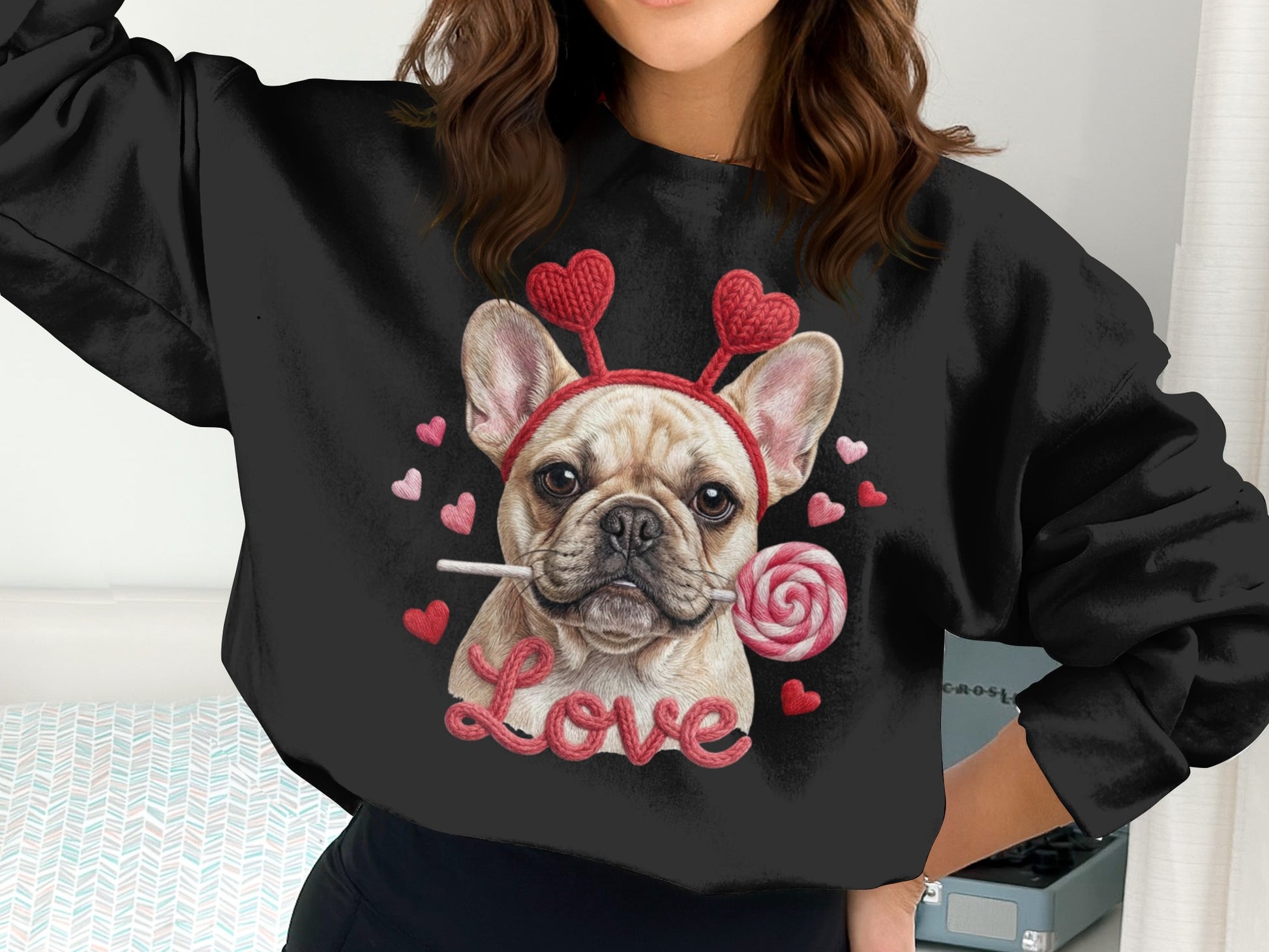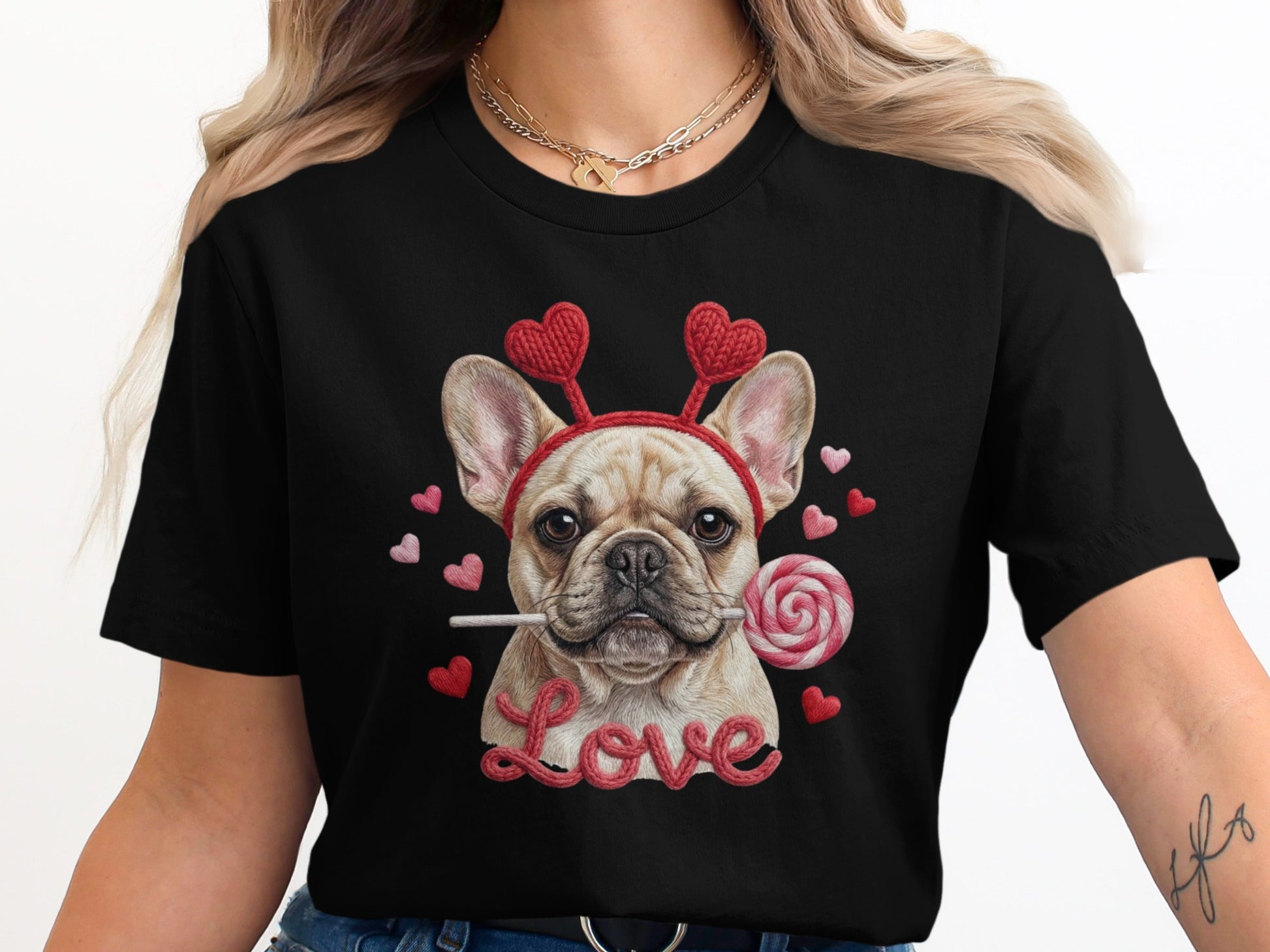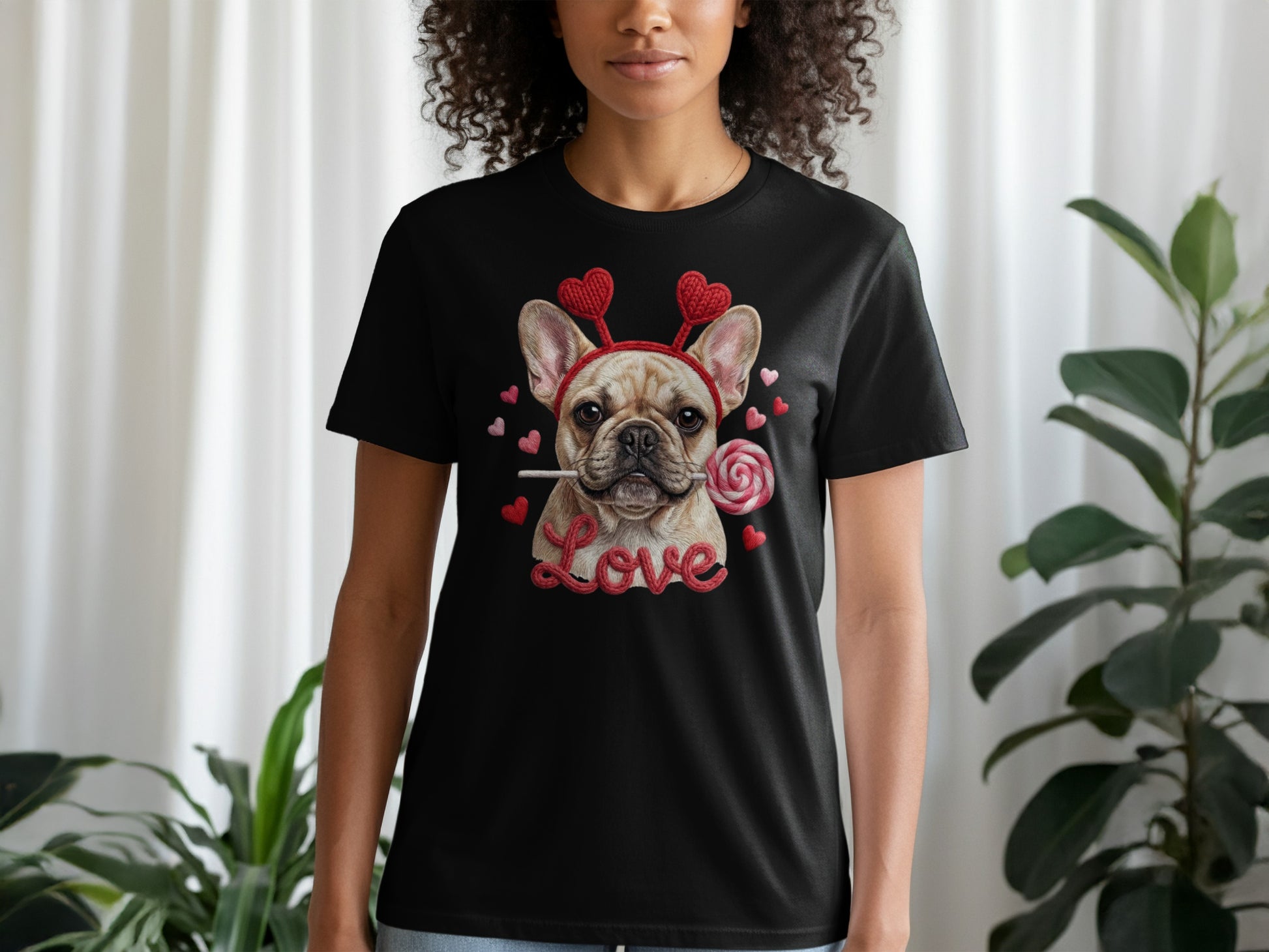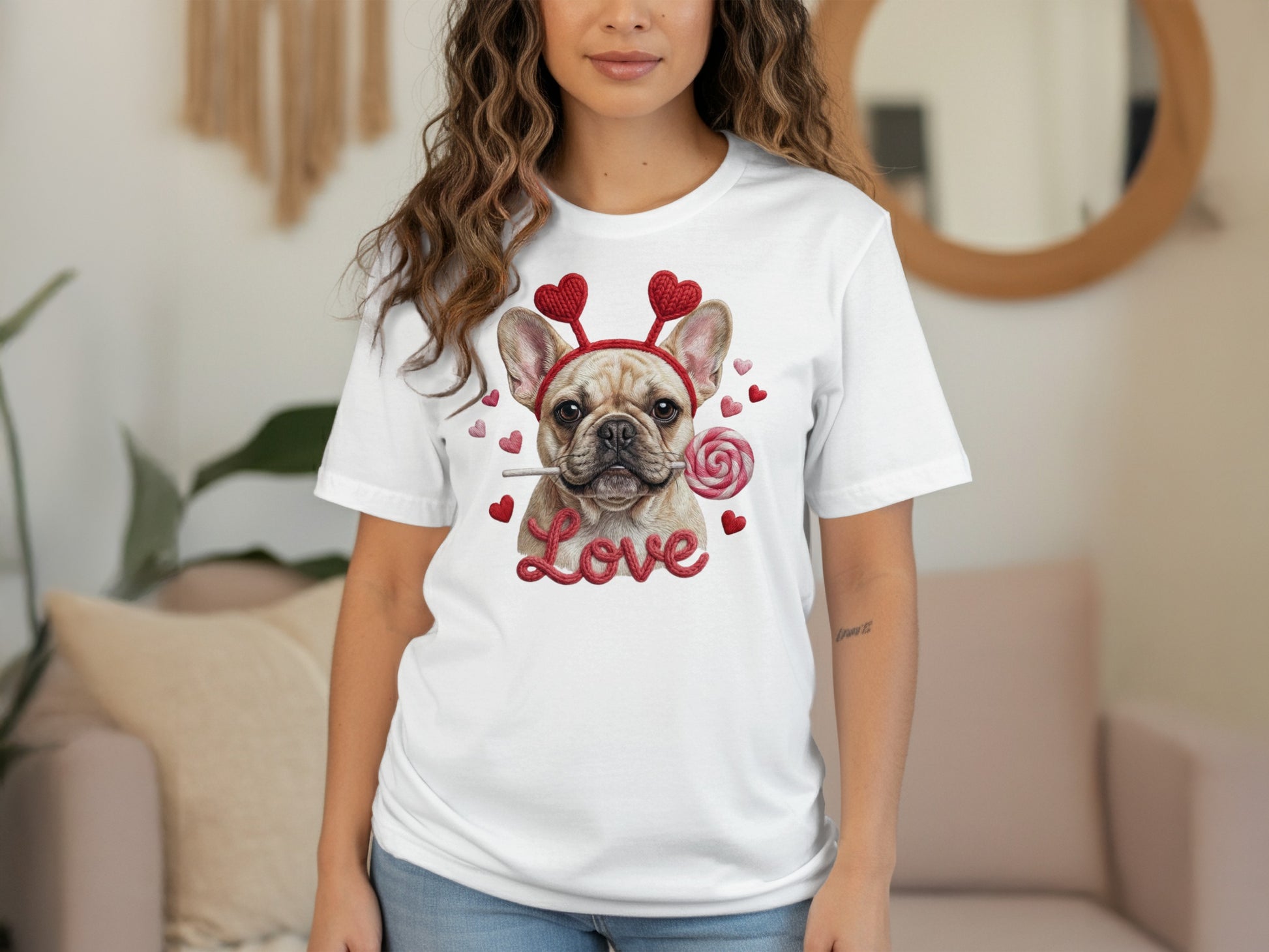 French Bulldog Valentines T-Shirt, Dog Love T-Shirt, Heart Headband Tee, Valentines Gift T-Shirt, Cute Dog Lover T-Shirt, Candy T-Shirt